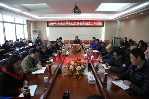 2月26日上午,我校在行政楼300会议室召开2019年春季开学初综治暨安全稳定工作会议,副校长李明出席会议并讲话,全校各单位主要责任人参加会议。