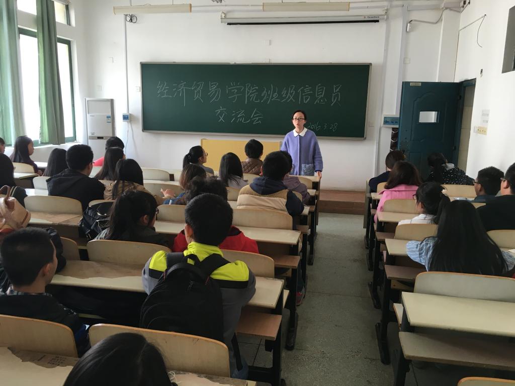 为进一步加强信息员队伍建设,完善信息上报机制,2016年3月28日中午,经济贸易学院组织各班级信息员召开了信息员工作会议。学院党政办主任肖斯敏、辅导员戴堃参加了此次会议。