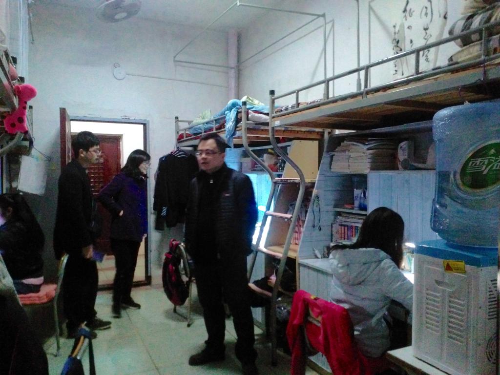 2017年2月27日晚上七点,外国语学院学生会各部门在院党总支副书记杨铖、院分团委书记王聪和院辅导员蔡杨的带领下对外语院同学的寝室进行了安全检查。