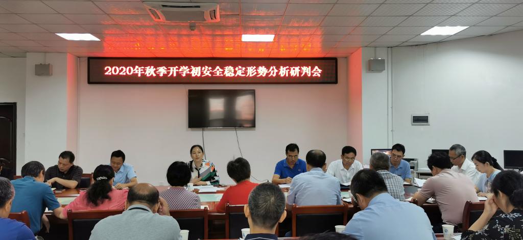 9月11日,我校在大学生活动中心B300会议室召开2020年秋季开学初安全稳定形势分析研判会。副校长周敏丹出席会议并讲话,相关职能部门主要责任人和各学院党委(党总支)书记参加会议。会议传达了省委教育工委、省教育厅《关于进一步做好新学期学校安全工作的通知》、《关于印发贯彻落实教育部2020年秋季学期和秋冬季疫情防控工作视频会议精神的通知》等有关文件精神。
