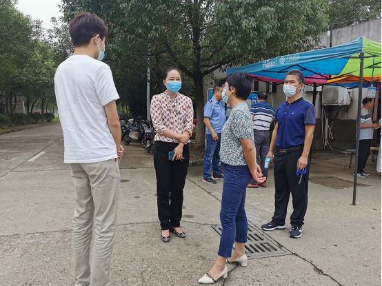 9月15日,副校长周敏丹来到迎新现场,检查指导迎新工作,看望新生,慰问迎新工作人员。保卫处、校防疫办等部门负责人陪同。