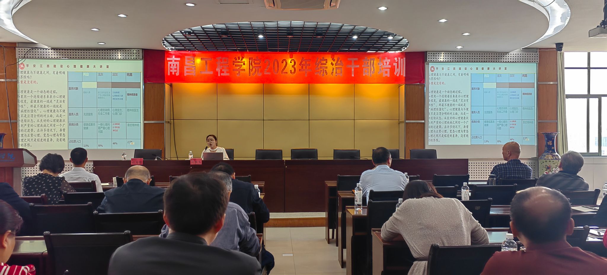 活动中,南昌市公安局电信网络犯罪侦查支队情报大队徐加明警官、江西省荣军优抚医院病区科主任,国家二级心理治疗师刘燕玉、中共江西省委党校教授,武汉大学政治学博士黄毅峰、保卫处治安科科长刘兵分别作了《《珍爱生活·远离电诈》》《心理健康状况的评估与调适》《提升应对重大突发公共事件的能力》《中华人民共和国反有组织犯罪法》专题讲座,与会人员集中观看了国家安全人民防线教育宣传片。