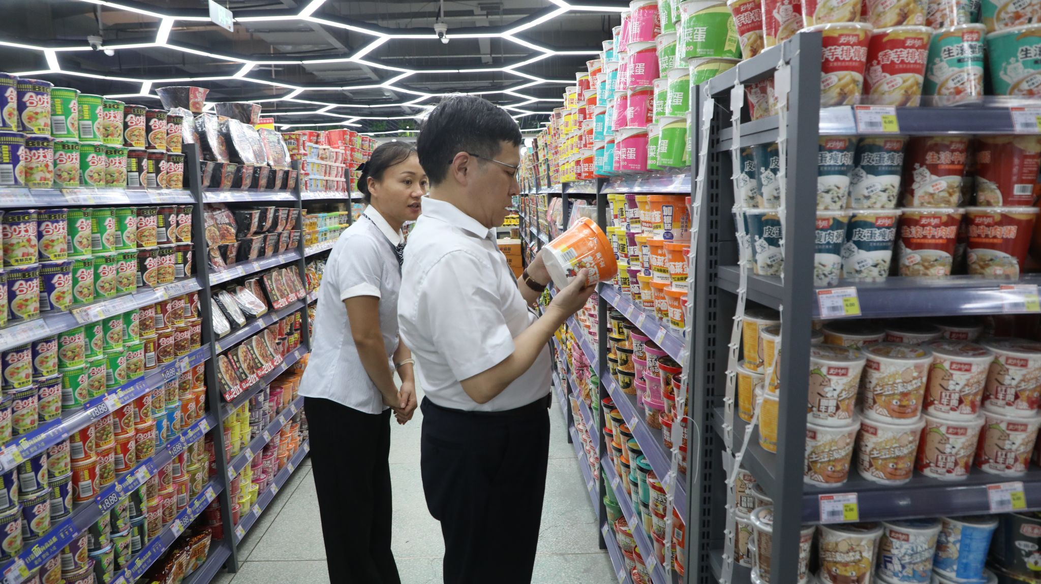 汪胜前一行前往润园、沁园和超市,检查食品卫生安全及开餐准备情况,现场查看了食堂从业人员健康证和“互联网+明厨亮灶”平台,强调要加强从业人员安全教育和食堂内部规范管理,做好全方位、全流程监控,确保燃气安全和各类消防设施配备到位。检查组还前往学校西大门、北门、学生宿舍查看校园道闸及访客系统建设情况和学生公寓安全管理及开学初准备情况,对检查中发现的问题及可能存在的风险隐患进行了现场反馈,并提出整改指导意见。