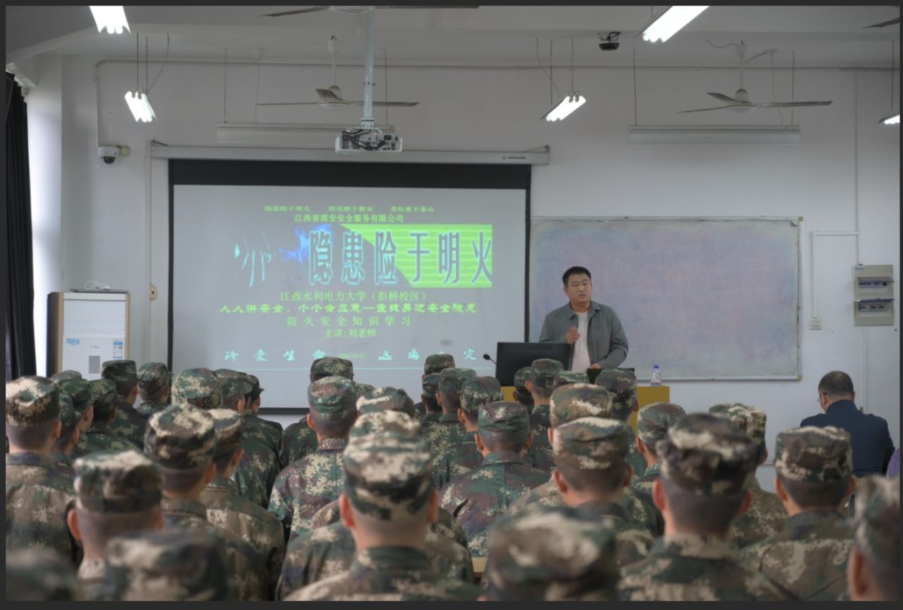 本次活动特邀江西省菩安安全服务有限公司刘勇主讲。培训中,刘勇结合近期典型火灾案例,深入剖析了日常火灾中暴露出的“自防自救能力薄弱、应急处置滞后”等突出问题,围绕校园及家庭火灾隐患排查、初期火灾扑救、逃生自救技巧等内容展开系统讲解,并通过生动案例详细演示了灭火器、消防水带等常用消防器材的正确操作方法。